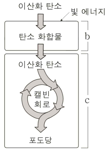 지문에서 "암반응 과정은 캘빈 회로를 통하여 진행되는데"라고 명시하고 있다.